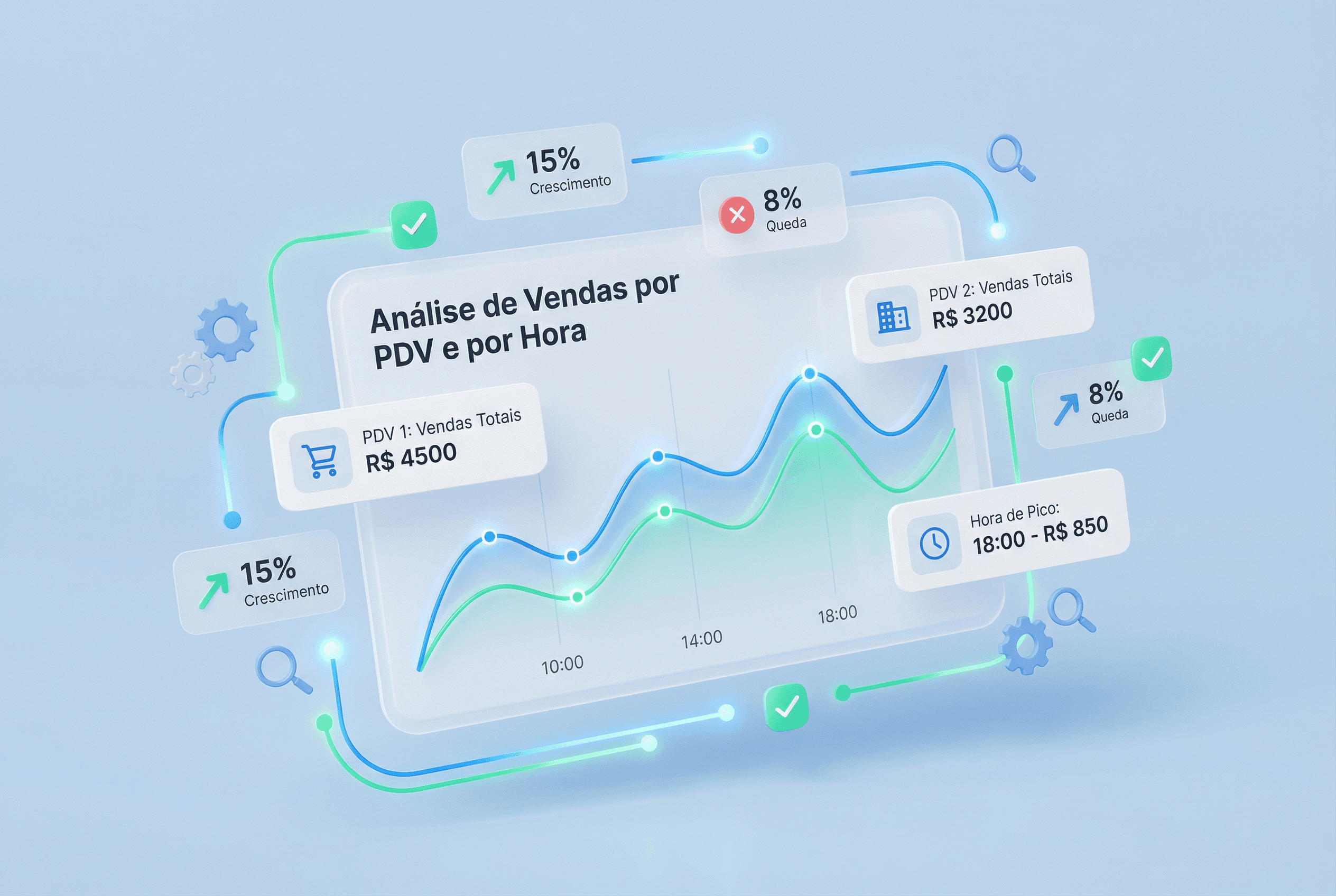 Acompanhe vendas por loja, categoria e produto, variações por hora e dia da semana, ticket médio, itens por cesta, performance de operadores de caixa e meios de pagamento, identificando padrões de consumo e oportunidades de ajuste imediato.
